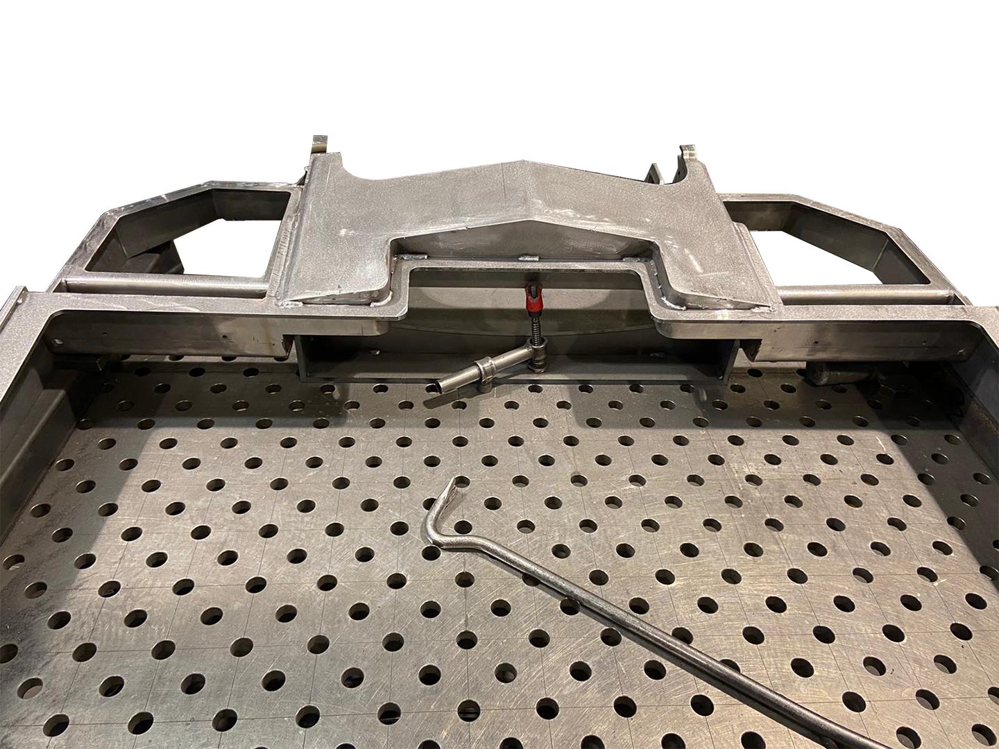 Die Panzerung wird auf verlängerte Bolzen des Hubgerüstes bzw. des Hubzylinders aufgesteckt und dann verspannt und gesichert.