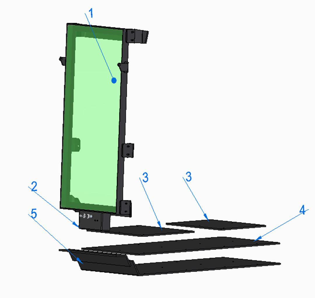 1. Einfacher Vorbaurahmen bestehend aus einem geschweißtem 60x60x6 Winkelprofil, mit 8mm starken gekanteten Befestigungsstahlblechen. Die Maße der Panzerglasscheibe sind 1590mm x 900mm mit Beschussklasse BR 6S Explosionsklasse ER 0